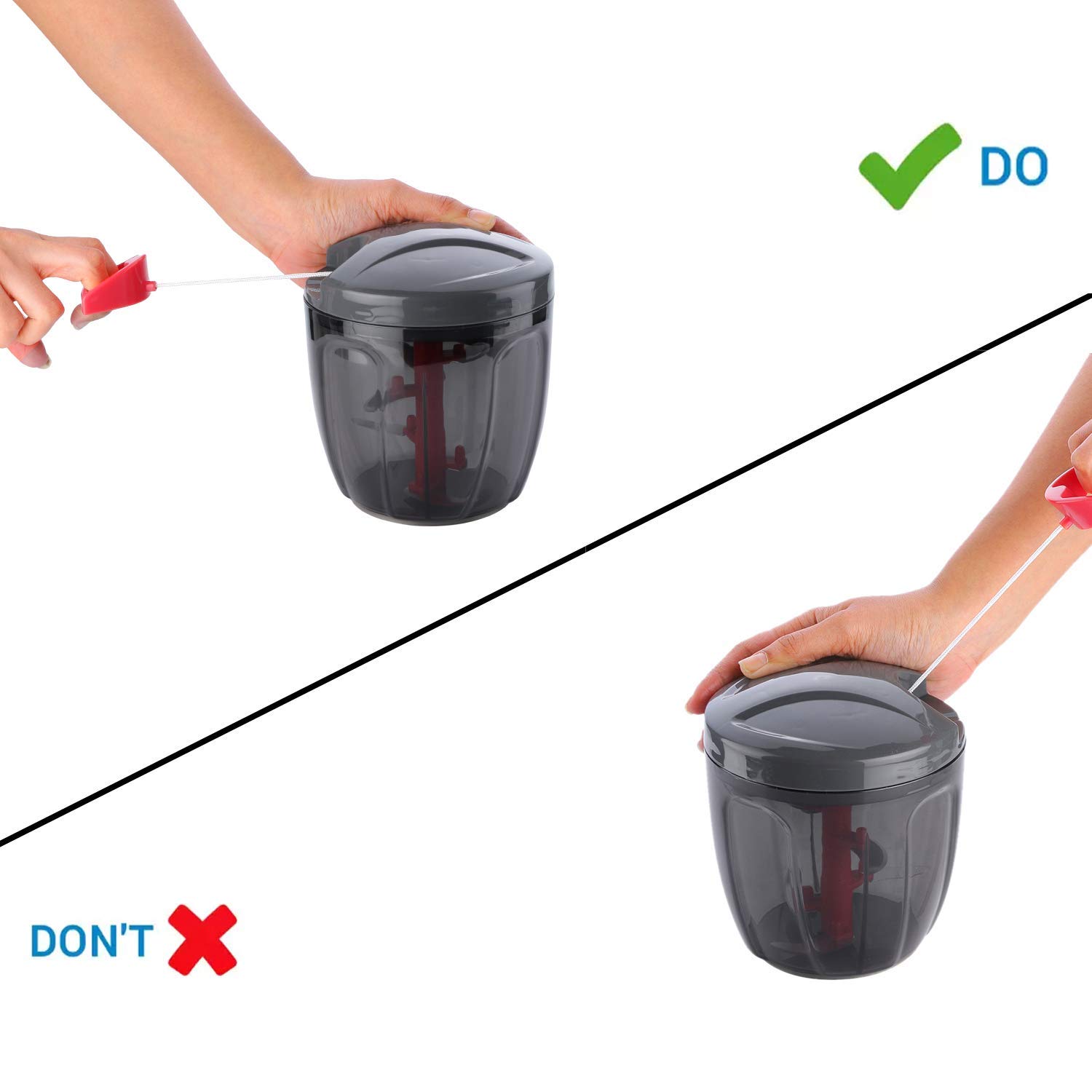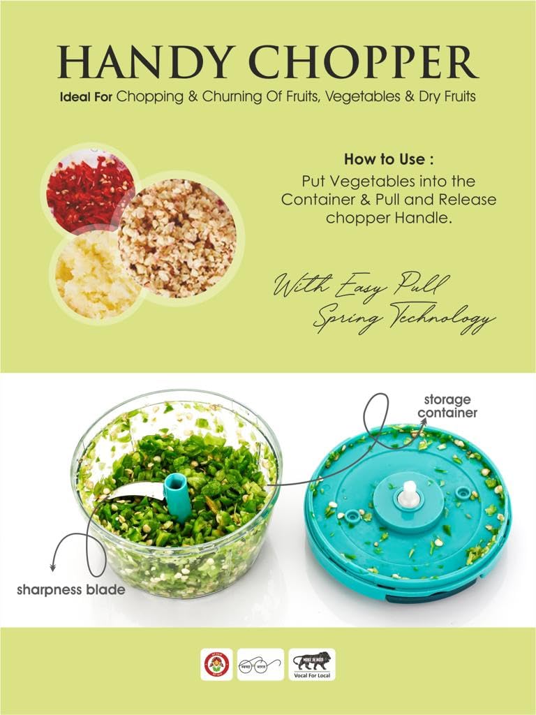 - This vegetable chopper comes with 3 sharp stainless steel blade places in different position to cover the entire height of the chopper, and manage to chop very easily in seconds.